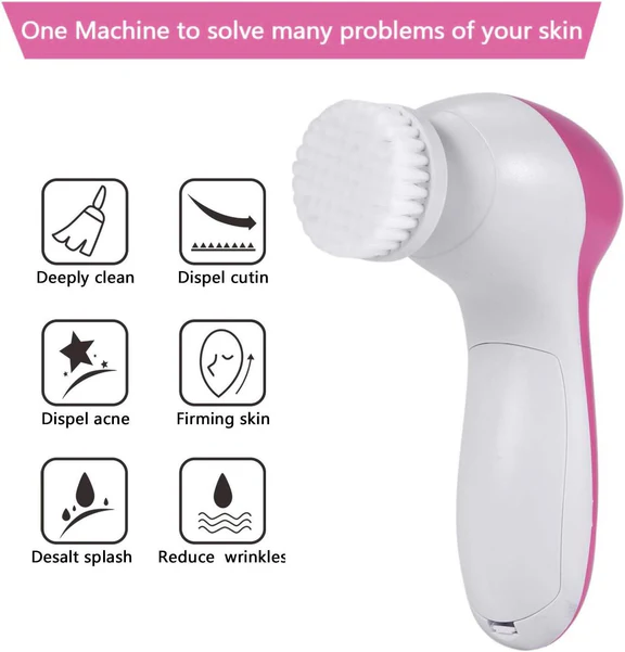 Upgrade your skincare routine with this 5-in-1 electric Facial Cleansing Brush, designed to deliver a complete spa-like facial experience from the comfort of your home.