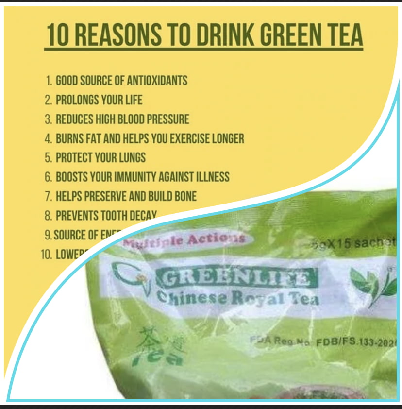 Greenlife Chinese Royal tea is a natural tea drink to neutralize the fat or oil in food. Functions: Greenlife Chinese Royal tea has the following functions: Cleansing the intestinal tract Anti Lipids Removing oil or Anti oil after meals Warm protection for your stomach Slimming down thru a much healthier way Daily drink anti-diarrhea Detoxification, Anti-aging and Anti-cancer Reducing sugar level.
