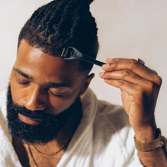 - Sanitize the derma roller with a disinfectant (not included)