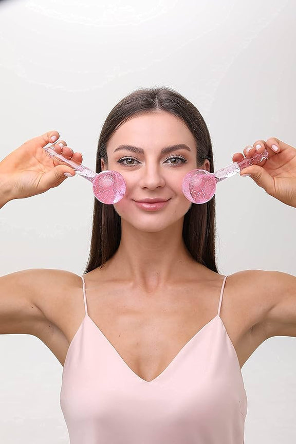 Ice Globe Facial Massager (2pcs) – Cryotherapy Tool for Puffiness, Pores & Skin Tightening