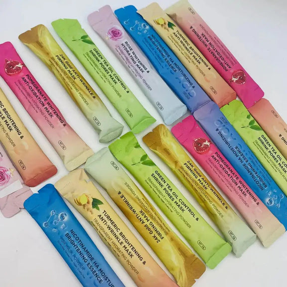 | Material | Rose Whitening & Hydrating Mask, 24k Gold Anti-Wrinkle & Firming Mask, Tumeric Brightening & Anti-Wrinkle Mask, Matcha Macaroon Mask (Anti-Acne & Calming Powder), Blueberry Macaroon Mask (Hydrating & Brightening Mask), Pistachio Macaroon Mask (Anti-Aging & Repairing Powder), Green Tea (Oil Control & Shrink Pores Mask), Vanilla (Anti-Aging & Anti-Oxidant Powder), Strawberry (Brightening & Moisturizing Powder), Coffee (Anti-Wrinkle & Anti-Aging Powder), Lemon Macaroon Mask (Whitening & Antioxidant Powder), Grape Macaroon Mask (Hydrating & Brightening Powder), Passionfruit Macaroon Mask (Whitening & Detox Powder), Pomegranate Whitening & Anti-Oxidation Mask, Aloe Vera Soothing & Moisturizing Mask |