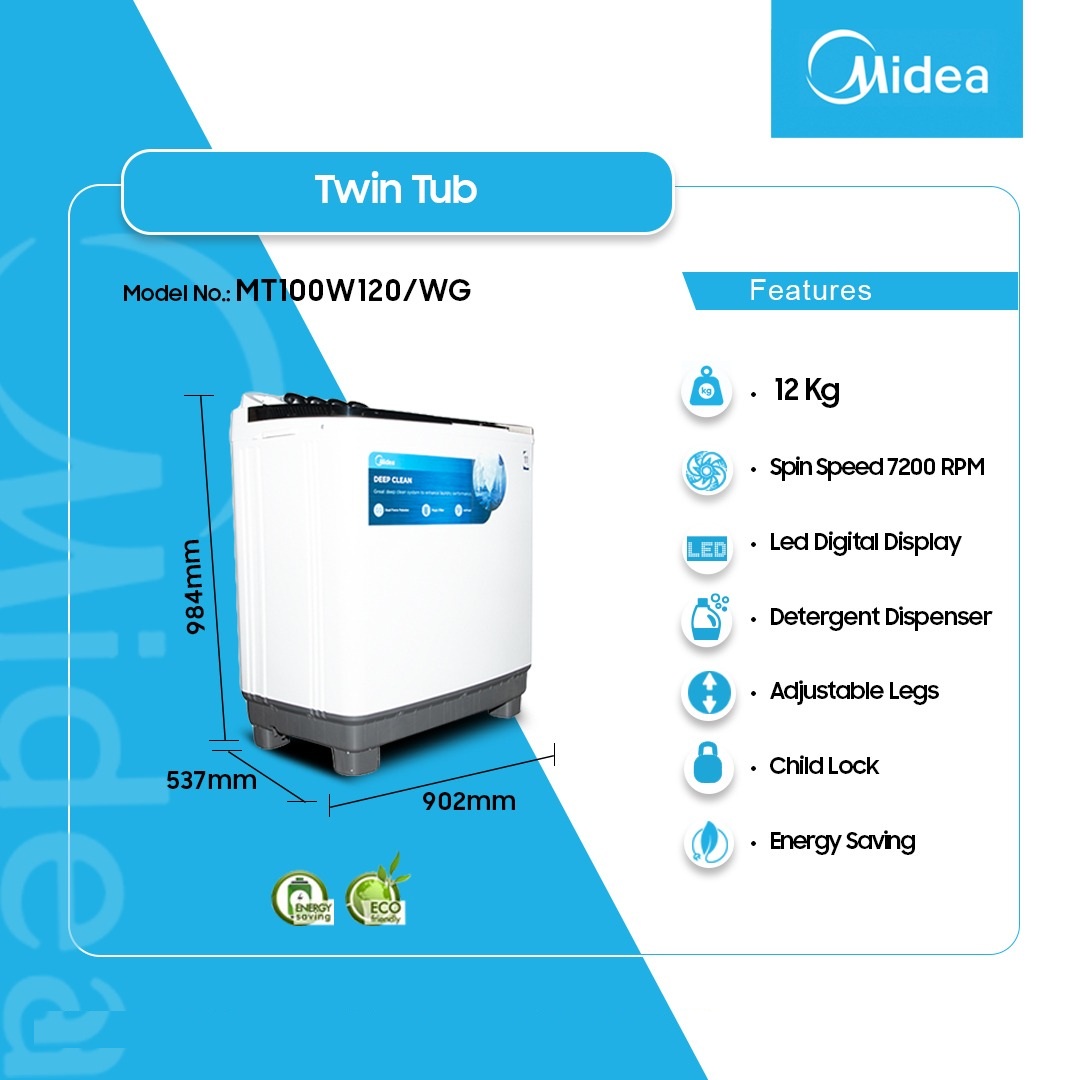 Midea 12kg Twin Tub Washing Machine Mt100w120/Wg is now available in our store. Check out the details below!