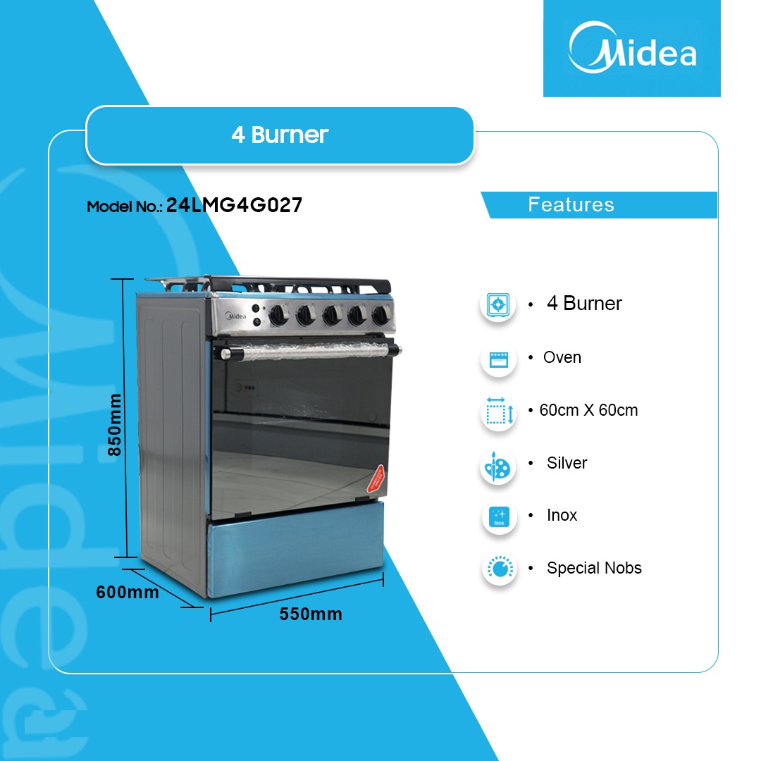 Midea 4 Burner Gas Cooker Silver 24lmg4g027 is now available in our store. Check out the details below!
