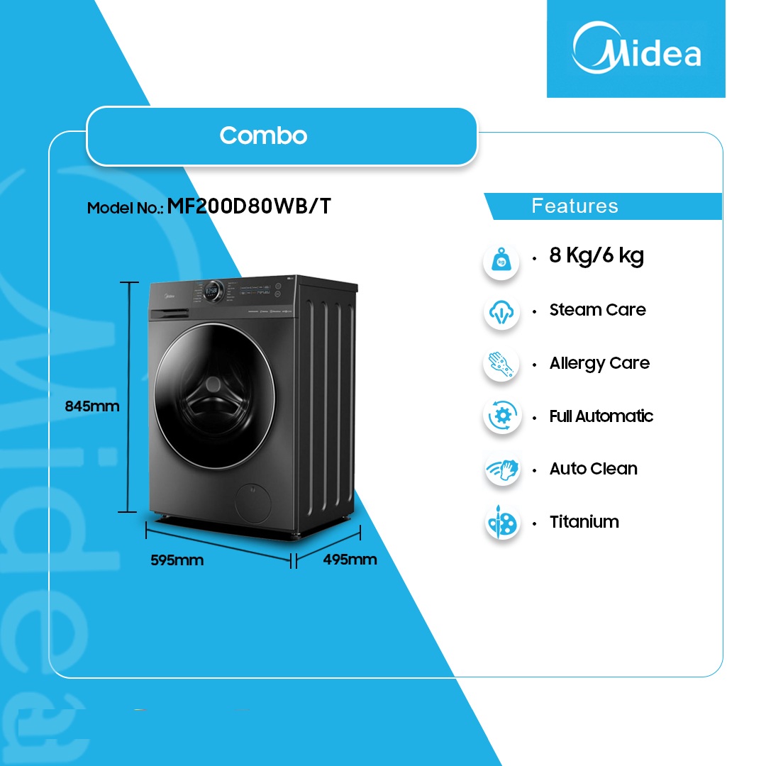 Midea Combo 8kg/6kg Washing Machine Mf200d80wb/T is now available in our store. Check out the details below!