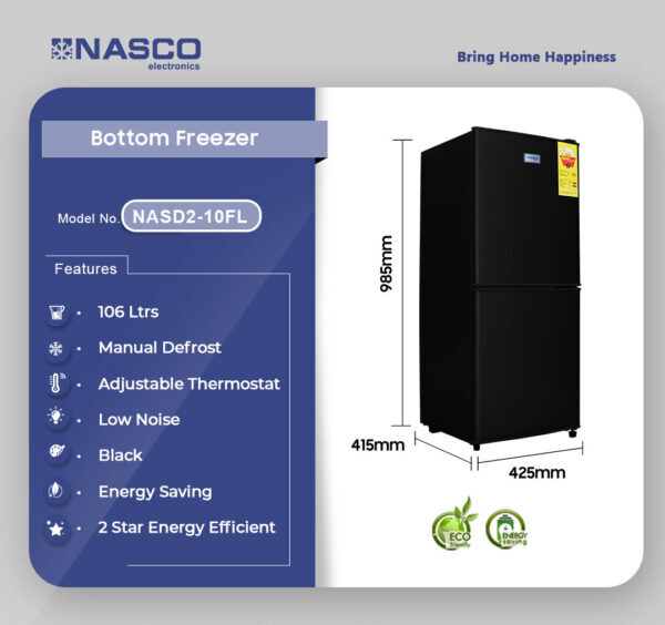 Nasco 106Ltrs Bottom Freezer Refrigerator NASD2-10FL