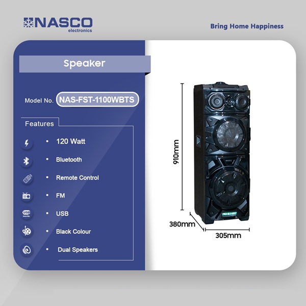 Nasco 110watt Bluetooth Sound Tower Nas Fst 1100wbts in Ghana is now available in our store. Check out the details below!