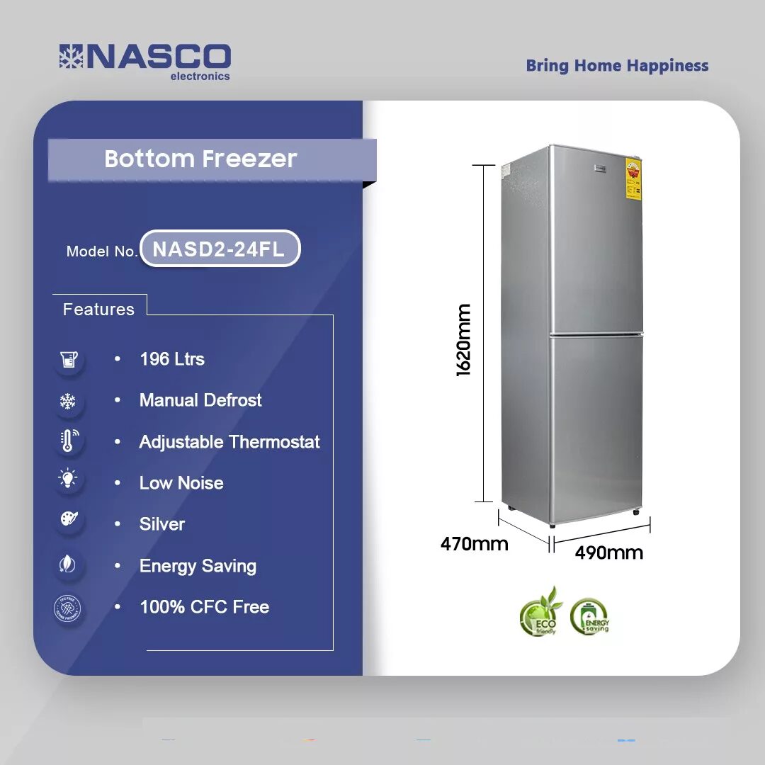 Nasco 196ltr Bottom Freezer Refrigerator Nasd2 24fl