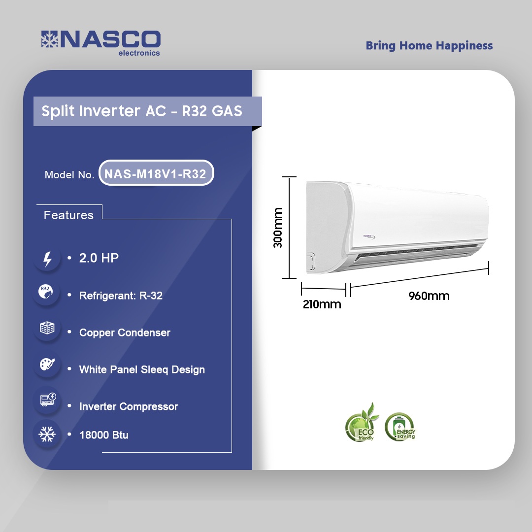 Nasco 2.0hp R32 Gas Split Inverter Air Conditioner NasM18v1 R32