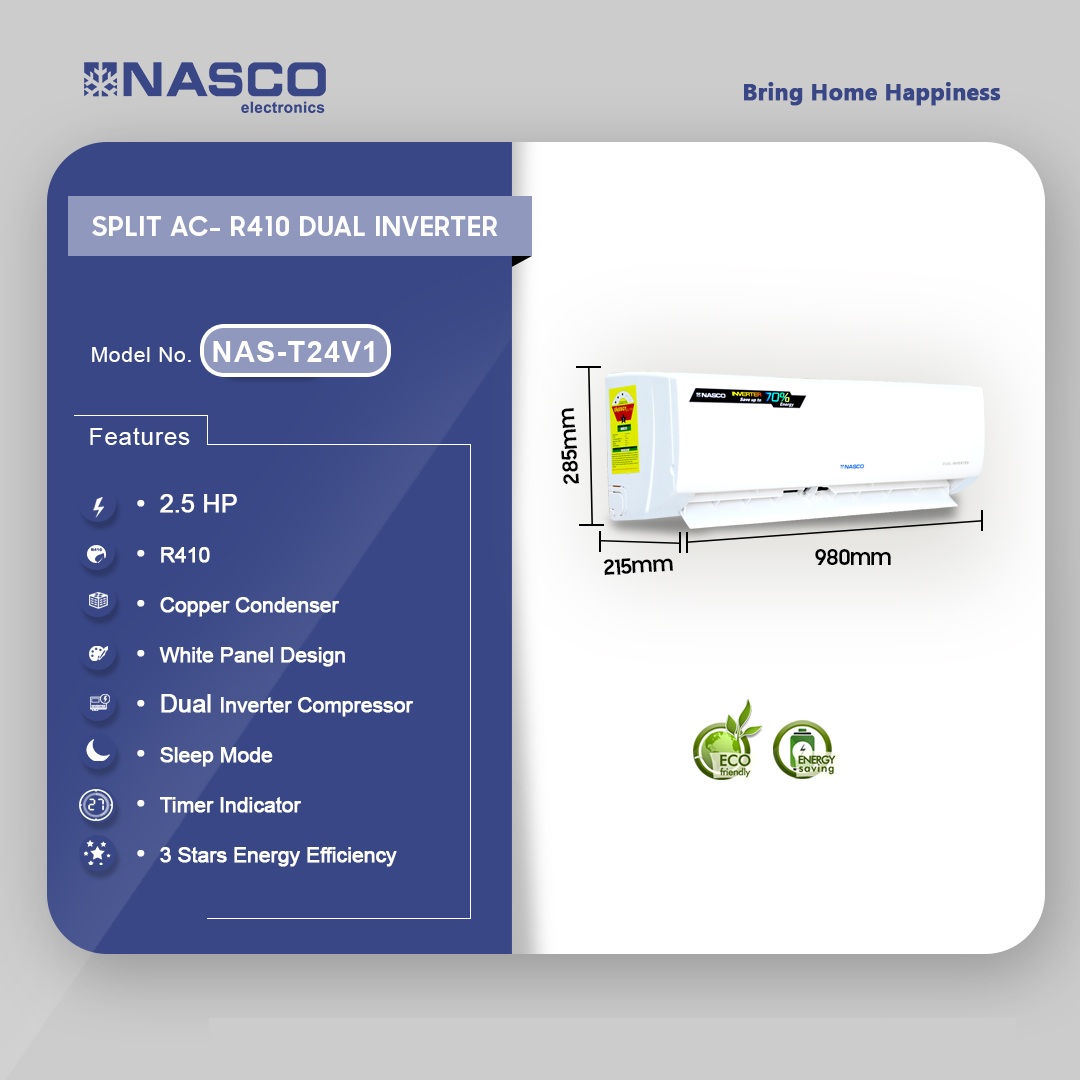 Nasco 2.5hp R410 Split Dual Inverter Air Conditioner Nas T24v1 is now available in our store. Check out the details below!