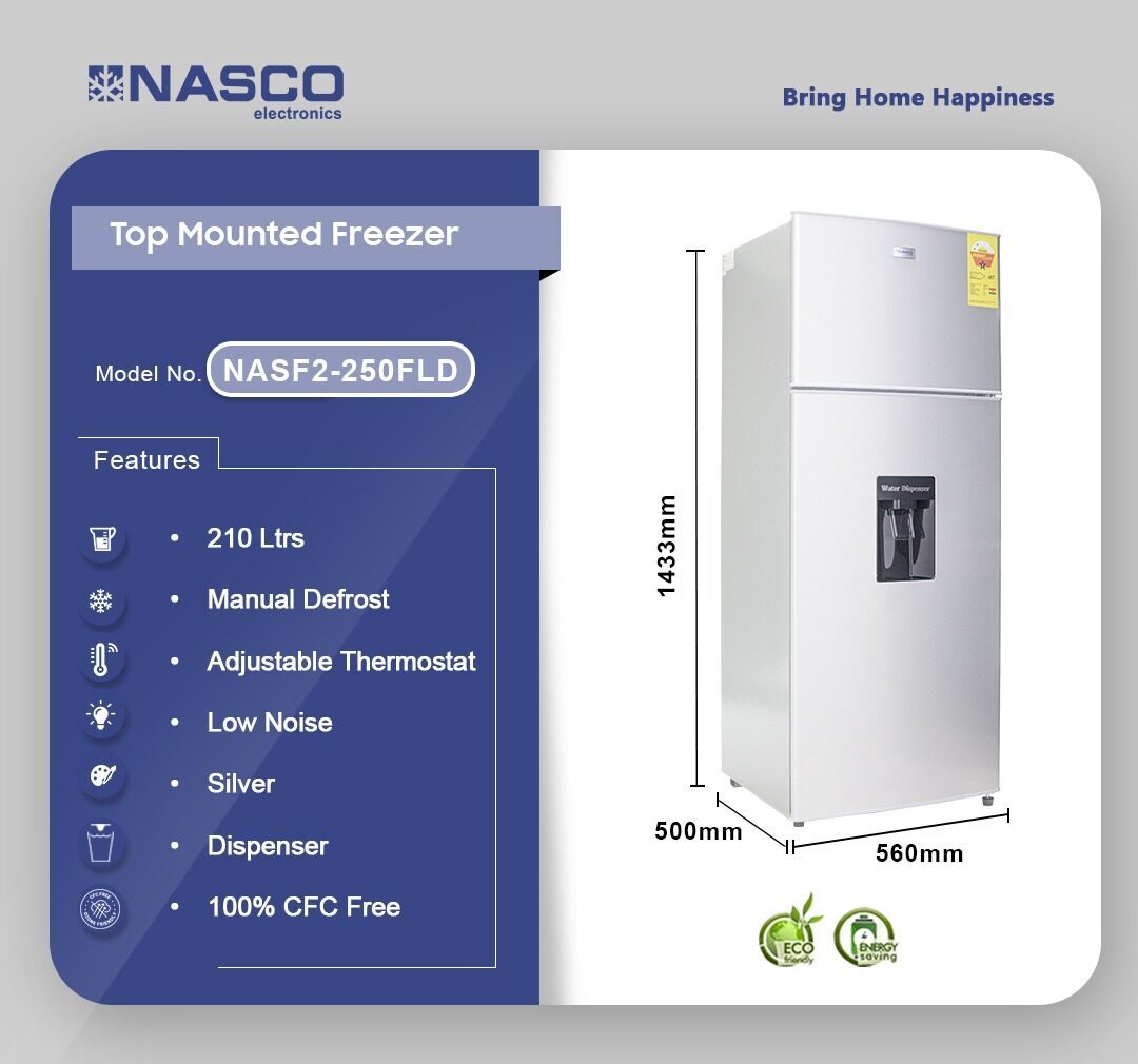 Nasco 210Ltrs Top Mounted Freezer NASF2-250FLD