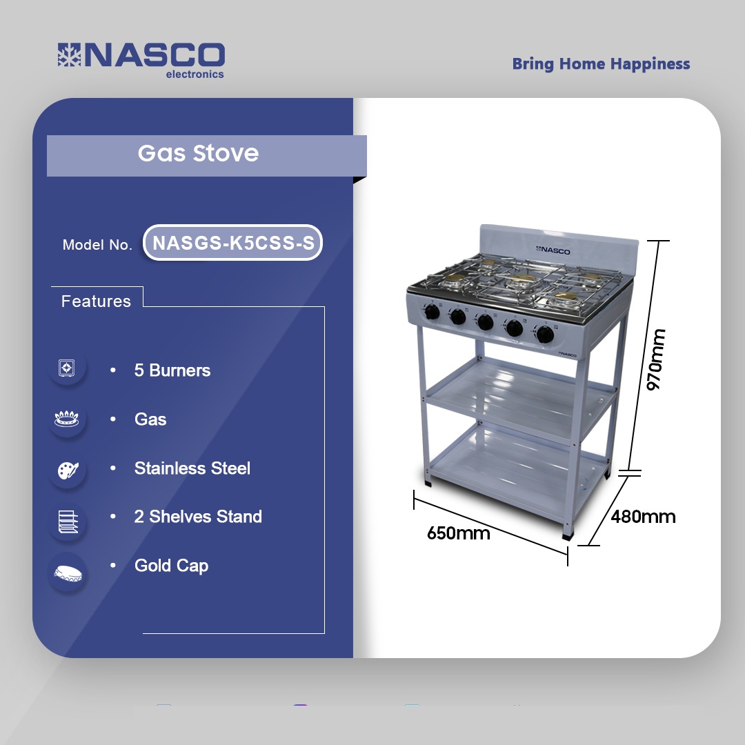 Nasco 5 Burner Gas Stove Nasgs K5css S in Ghana is now available in our store. Check out the details below!
