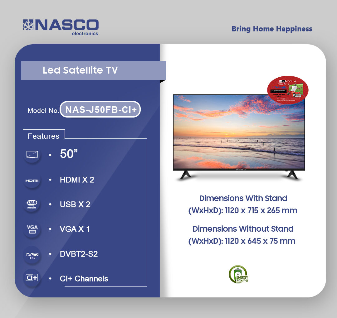 Nasco 50″ Led Digital Satellite Tv Nas J50fb Ci+ is now available in our store. Check out the details below!