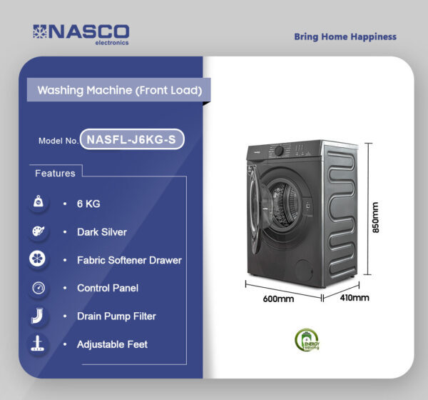 Engineered for efficiency, the Nasco NASFL-J6KG-S is built with energy-saving technology that reduces power consumption while maintaining powerful performance. This not only saves you money on electricity bills but also supports eco-friendly living. Designed with long-lasting durability, it provides consistent washing power year after year, making it an excellent investment for any modern home.