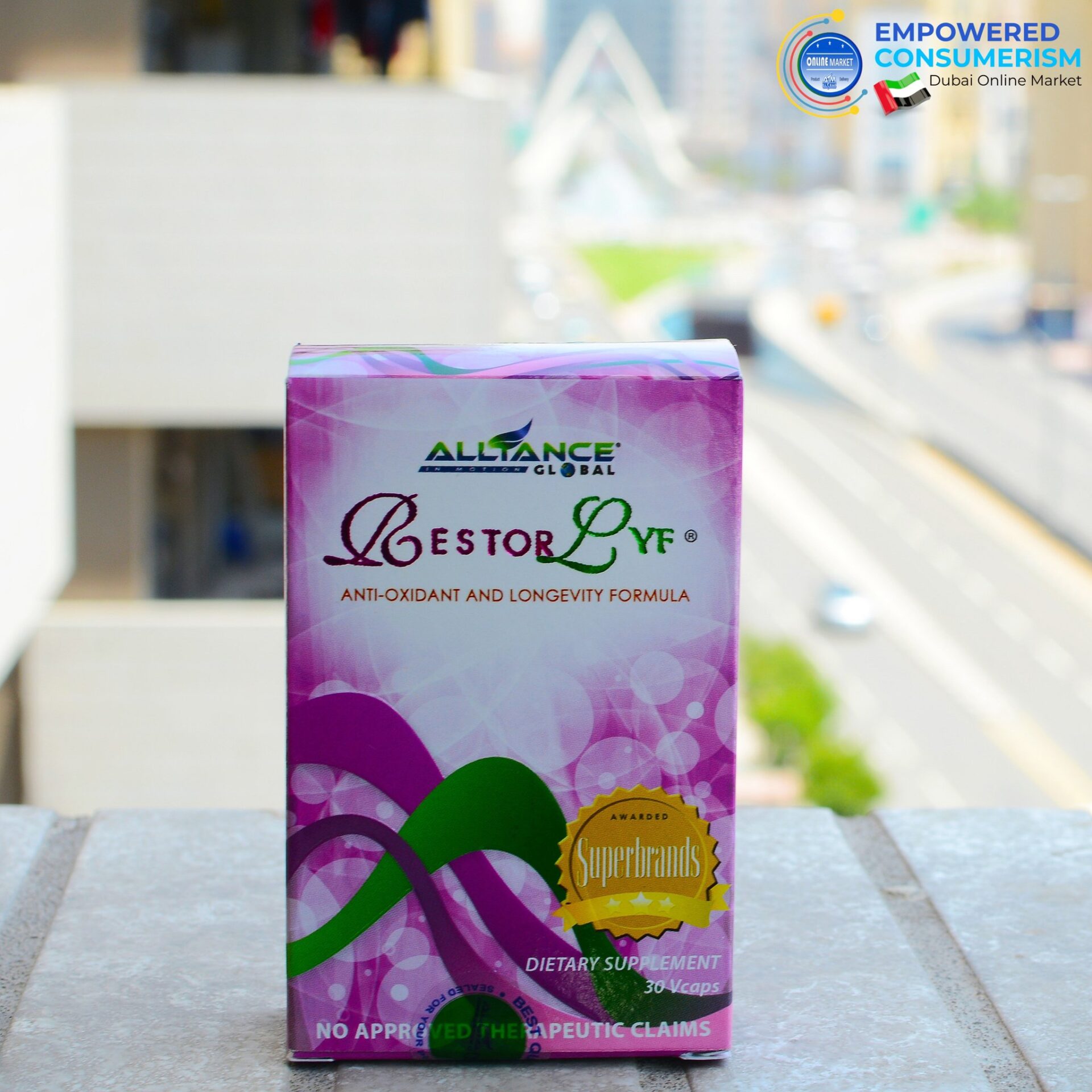Buy Reliable! 30v-caps Aim Global Restorlyf is also a dietary supplement marketed as a longevity formula containing resveratrol as the main ingredient.