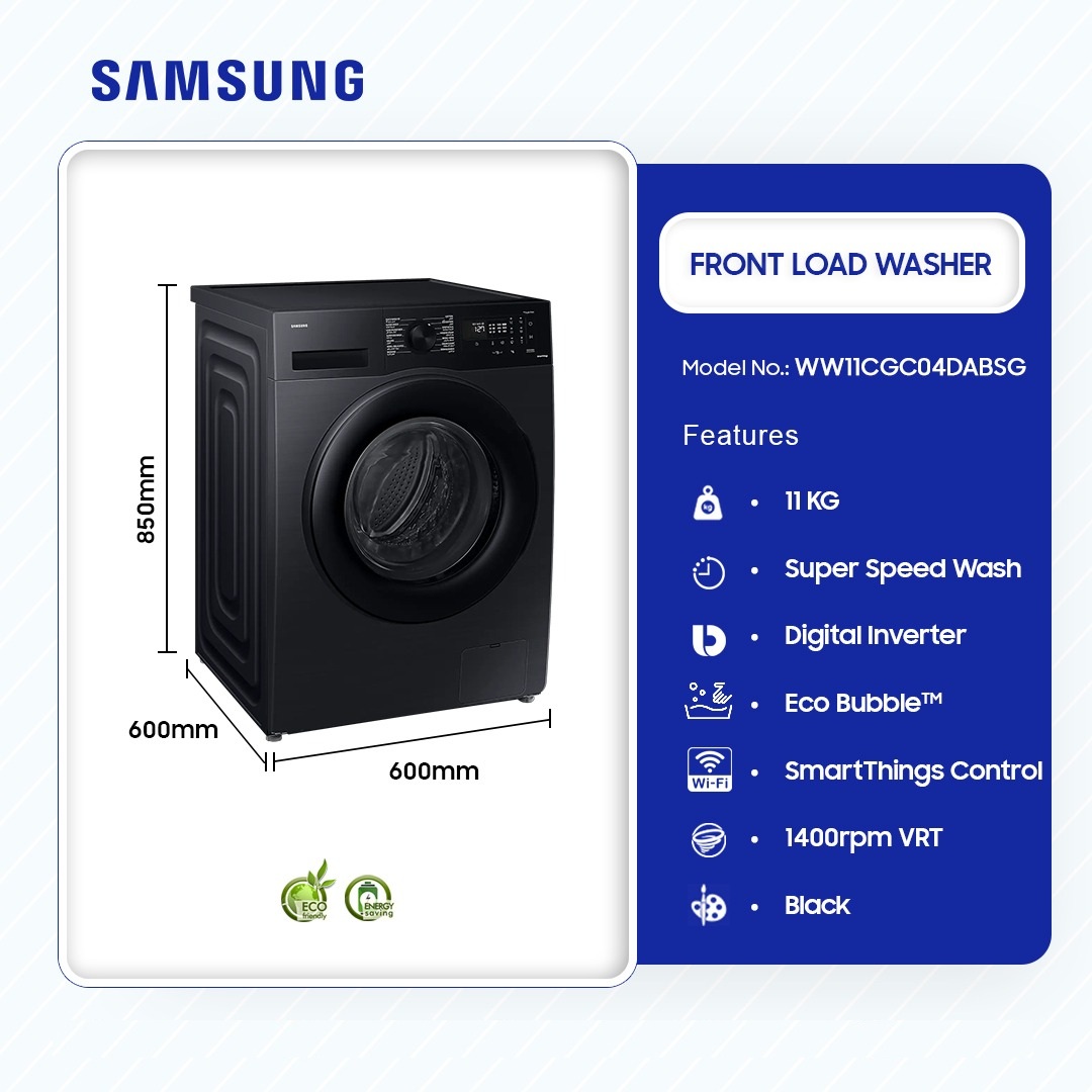 Samsung 11kg Front Load Full Auto Washer Washing Machine Ww11cgc04dabsg is now available in our store. Check out the details below!