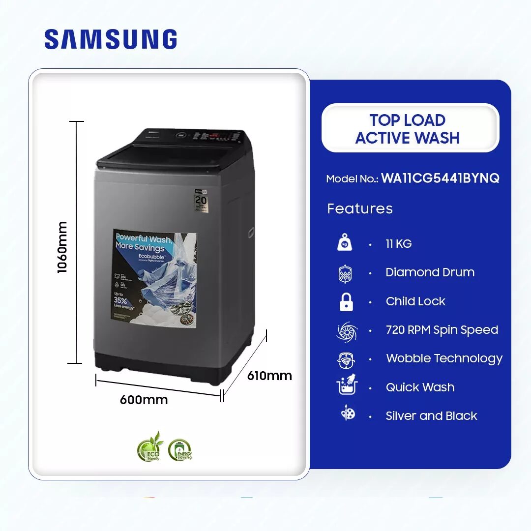 Samsung 11kg Top Load Active Washing Machine Wa11cg5441bynq is now available in our store. Check out the details below!
