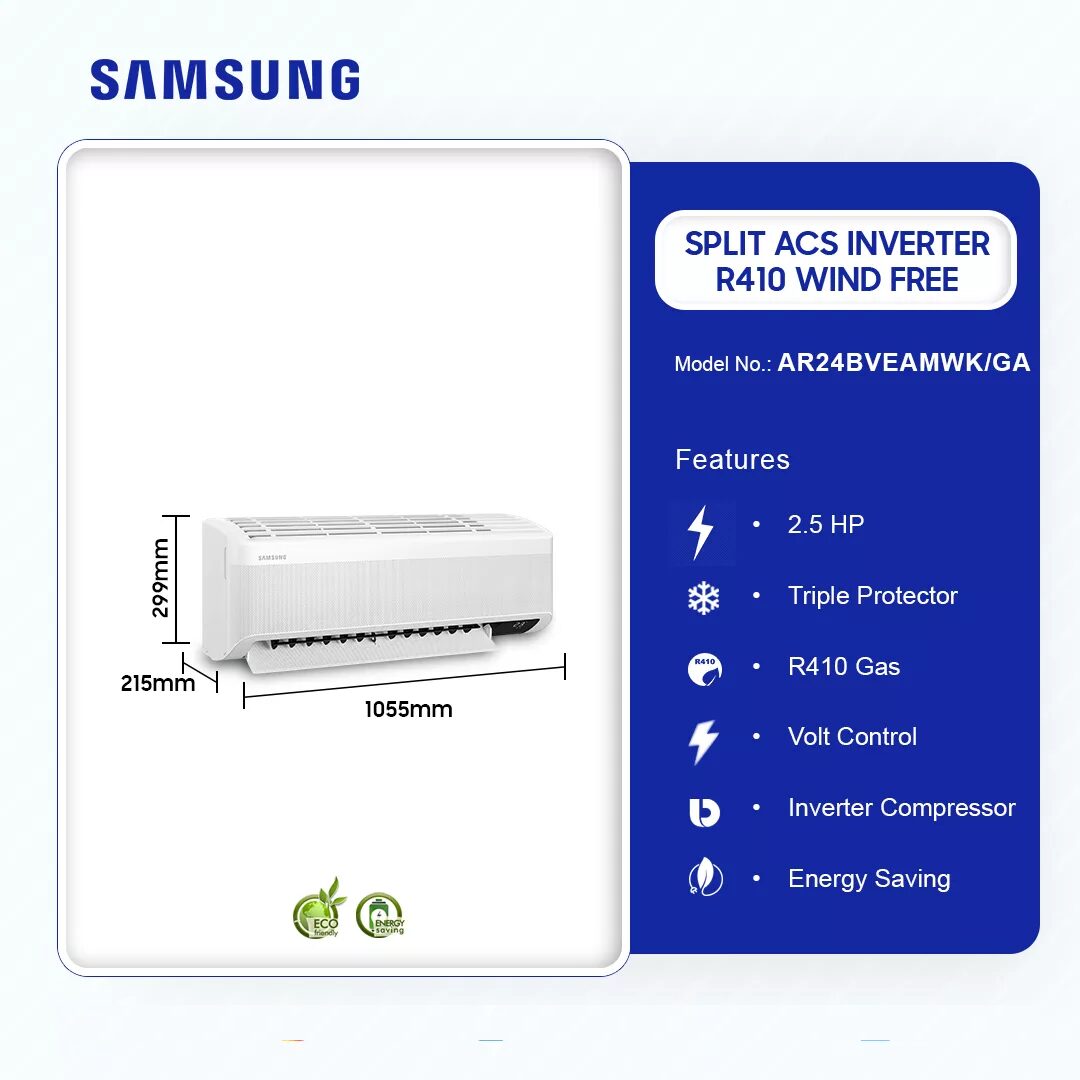 Samsung 2.5hp Wind Free Split Acs Inverter R410 Ar24bveamwk/Ga