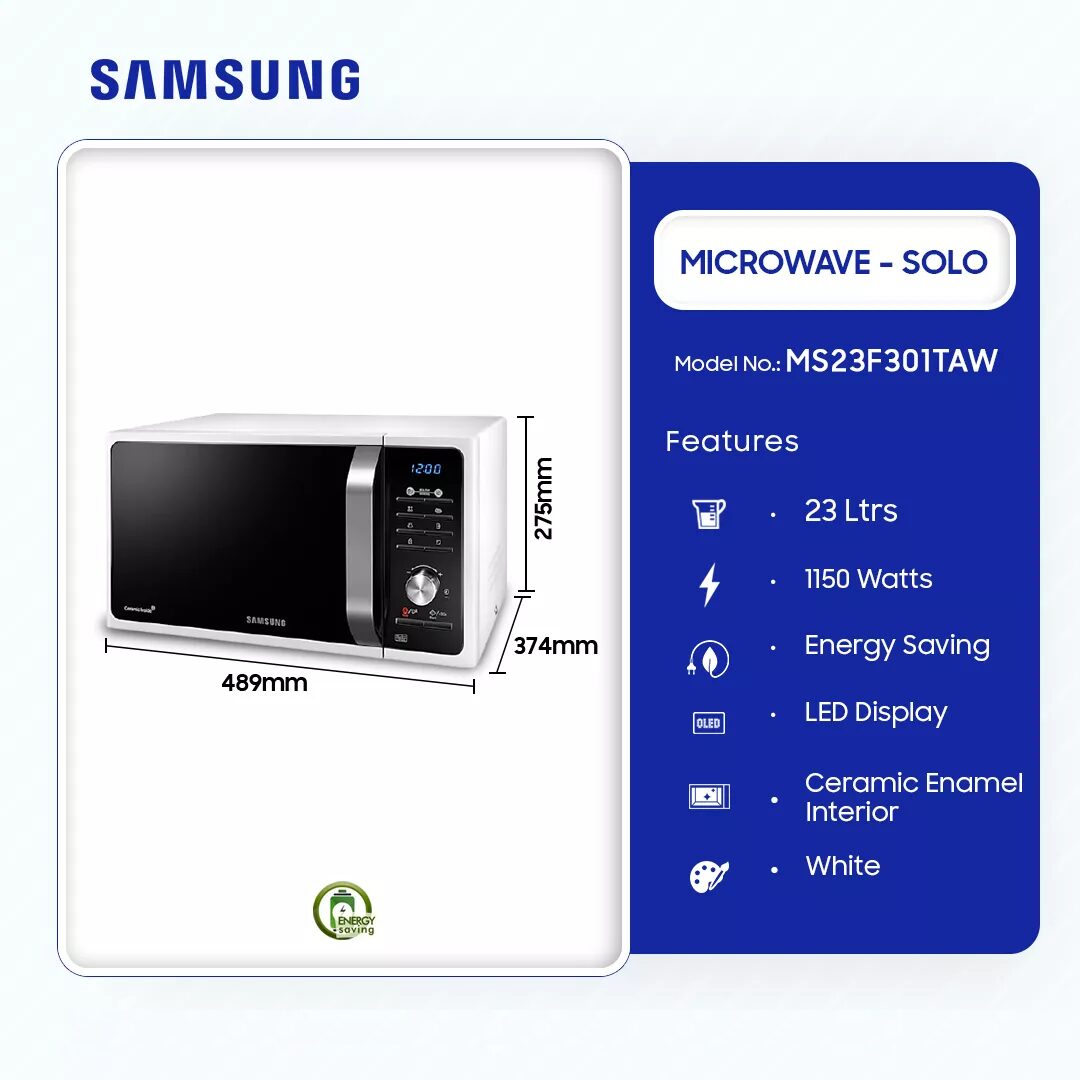 Samsung 23ltr Solo Microwave Ms23f301taw is now available in our store. Check out the details below!