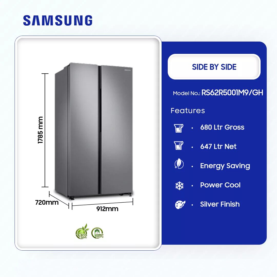 Samsung 647ltr Side By Side Refrigerator Rs62r5001m9/Gh in Ghana Massive 647L Capacity for Ultimate Storage Convenience Experience the perfect blend of style and functionality with the Samsung 647L Side-by-Side Refrigerator (RS62R5001M9/GH). Designed for large households, this extra-large refrigerator provides ample space to store fresh groceries, beverages, and frozen essentials with ease. The side-by-side door design ensures easy access to both fresh and frozen sections, while the sleek silver finish adds a touch of modern elegance to any kitchen. Whether you’re meal prepping for the week or stocking up on essentials, this high-capacity fridge keeps everything organized and within reach. Advanced … Samsung 647ltr Side By Side Refrigerator Rs62r5001m9/Gh is now available in our store. Check out the details below! Buy now on Ololo Express