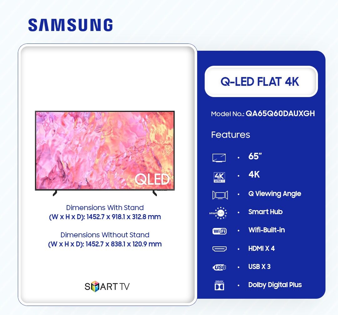 Samsung 65″ Inch QLed Flat 4k Television Qa65q60dauxgh is now available in our store. Check out the details below!