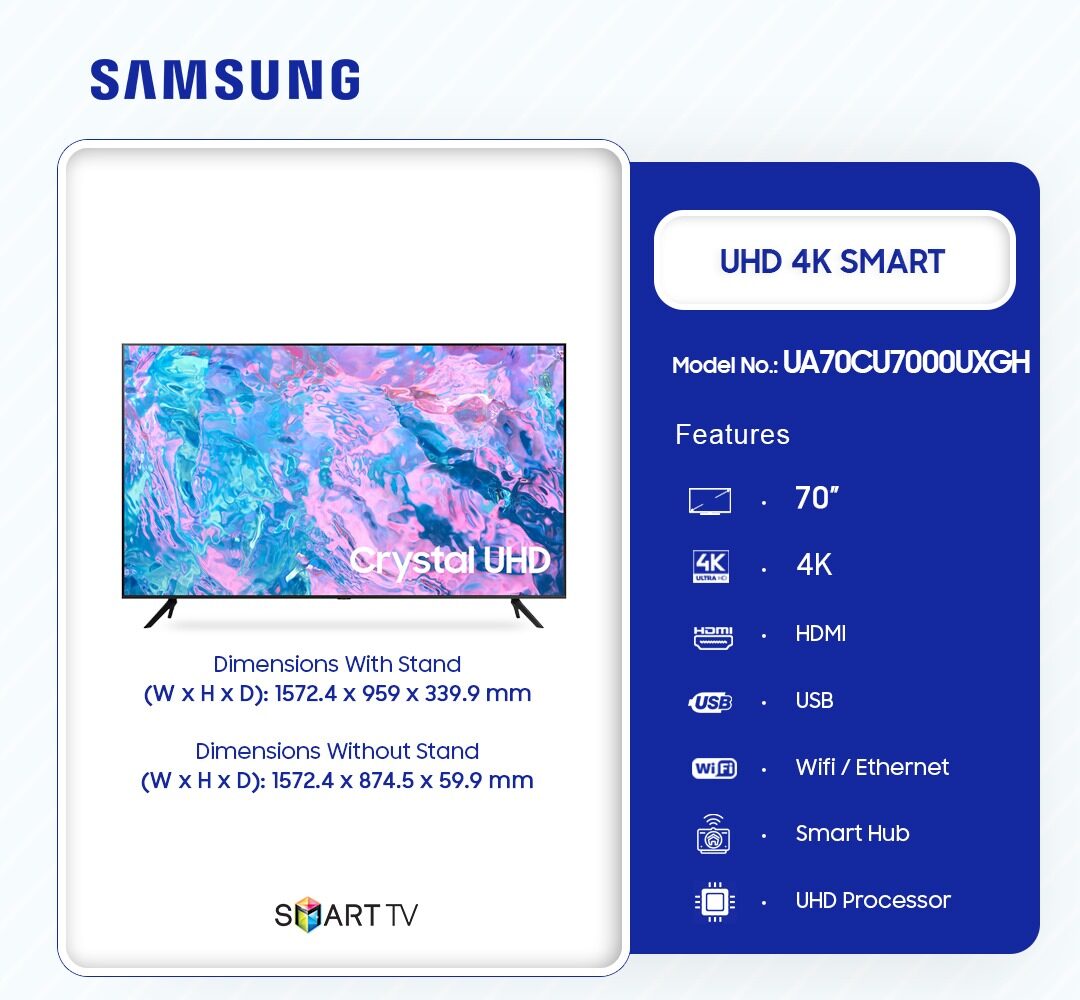 Samsung Uhd Smart 4k 70 Inch Television Ua70cu7000uxgh is now available in our store. Check out the details below!