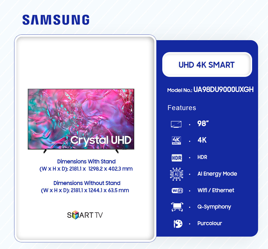 samsung uhd smart 4k 98 inches television ua98du9000uxgh is now available in our store. Check out the details below!
