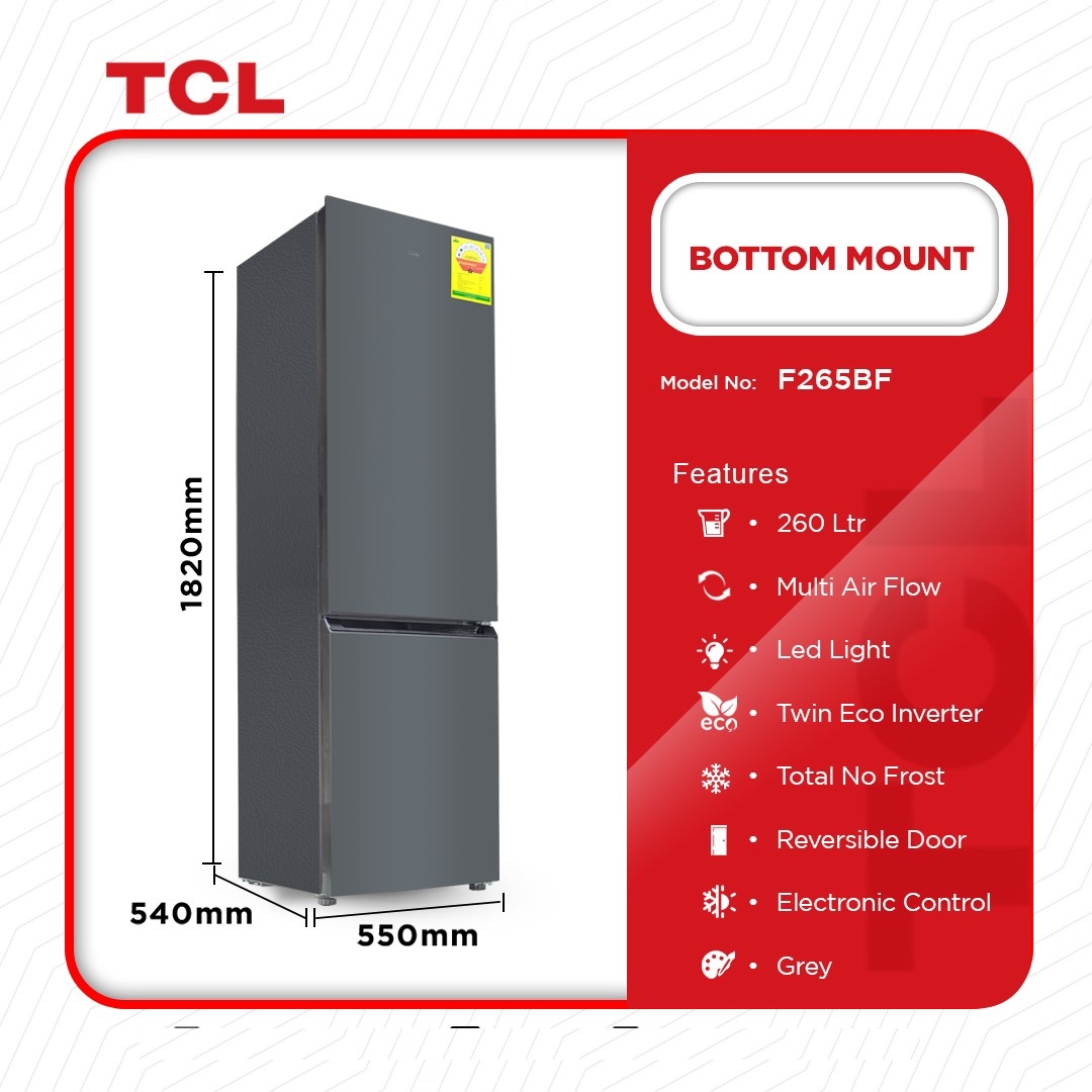 Tcl Bottom Mount Fridge 260ltrs Double door F265bf is now available in our store. Check out the details below!