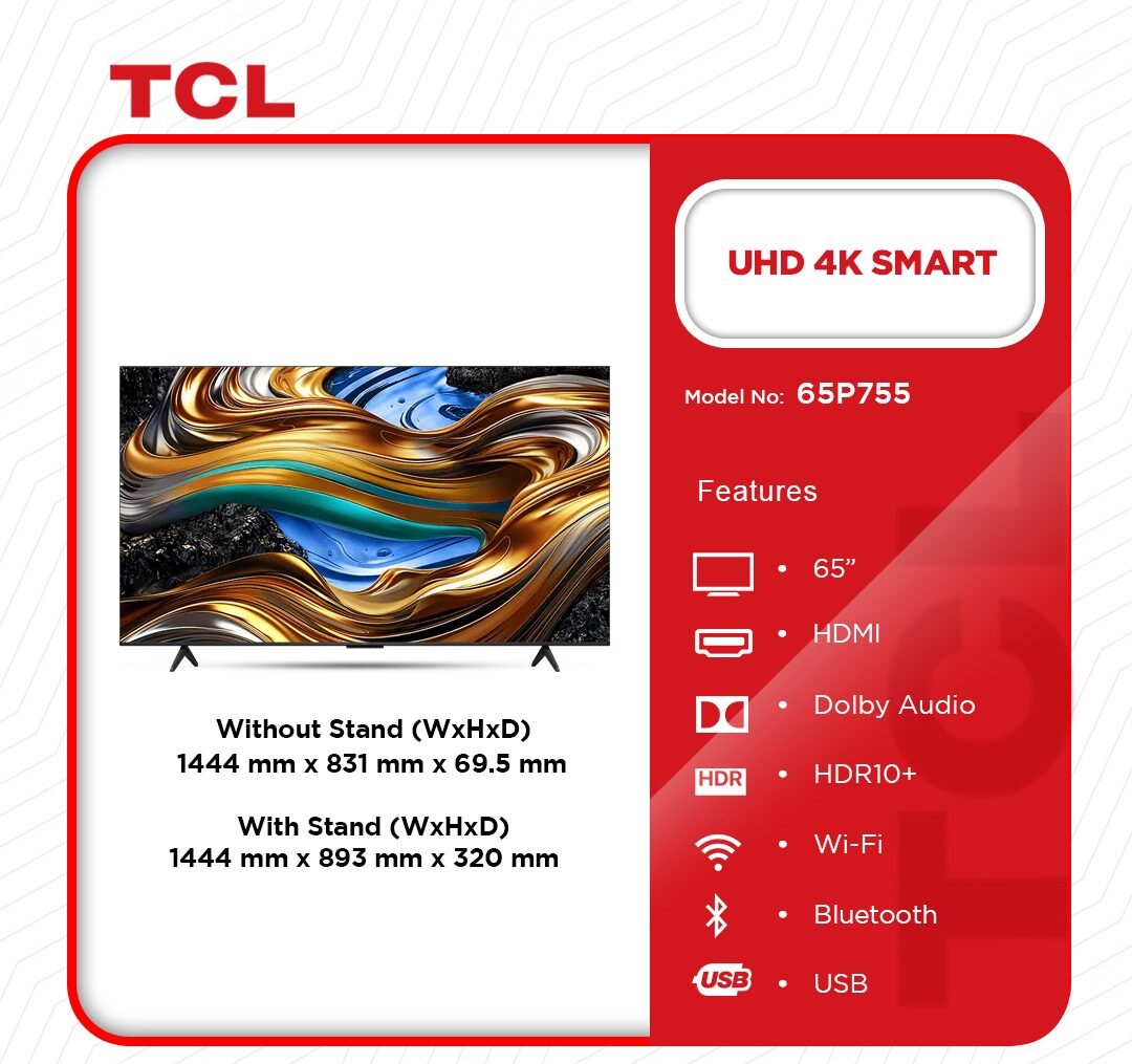 Immersive Visuals with Cutting-Edge AI Technology Transform your viewing experience with the TCL UHD 4K Smart Android TV 65″ (65P755), designed to deliver stunning clarity and color. Powered by the AiPQ Processor, this TV optimizes visuals in real time, ensuring every scene is as lifelike as possible. With Wide Color Gamut and HDR10+, experience vibrant hues and striking contrast, bringing your favorite movies, shows, and games to life. From the smallest details to the most dramatic scenes, this TV delivers visuals that captivate and immerse you. Smart Features for Seamless Entertainment Enjoy effortless streaming and entertainment with this Android-powered Smart … Tcl-Uhd-4k-Smart-Android-Tv-65”65p755 is now available in our store. Check out the details below! Buy now on Ololo Express